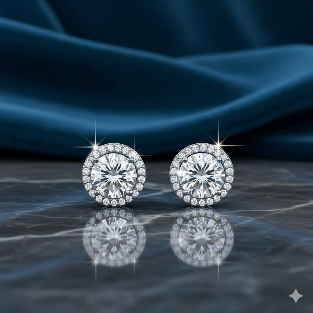 Cate & Chloe Ariel 18k White Gold Plated Silver Halo Stud Earrings with Simulated Diamonds for Women
