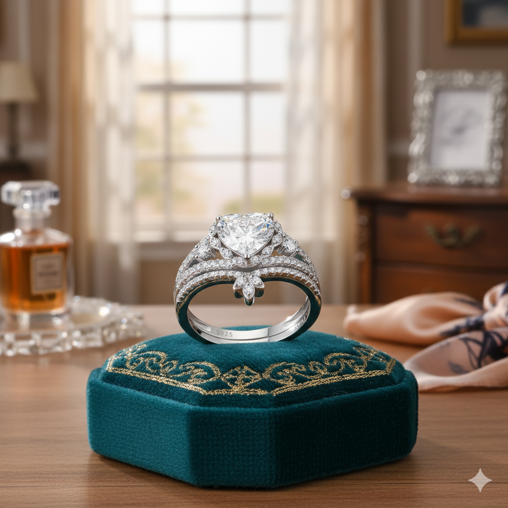 Beautlace Heart Engagement Rings Set for Women,Moissanite 2 Carat Promise Ring for Her,925 Sterling Silver Heart Bridal Ring Set-Size 7