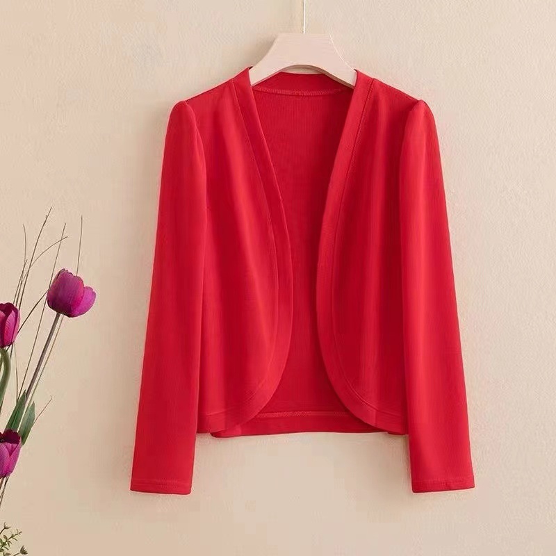 Shawl Cardigan Short Cardigan Pure Color All-matching Women — Pink