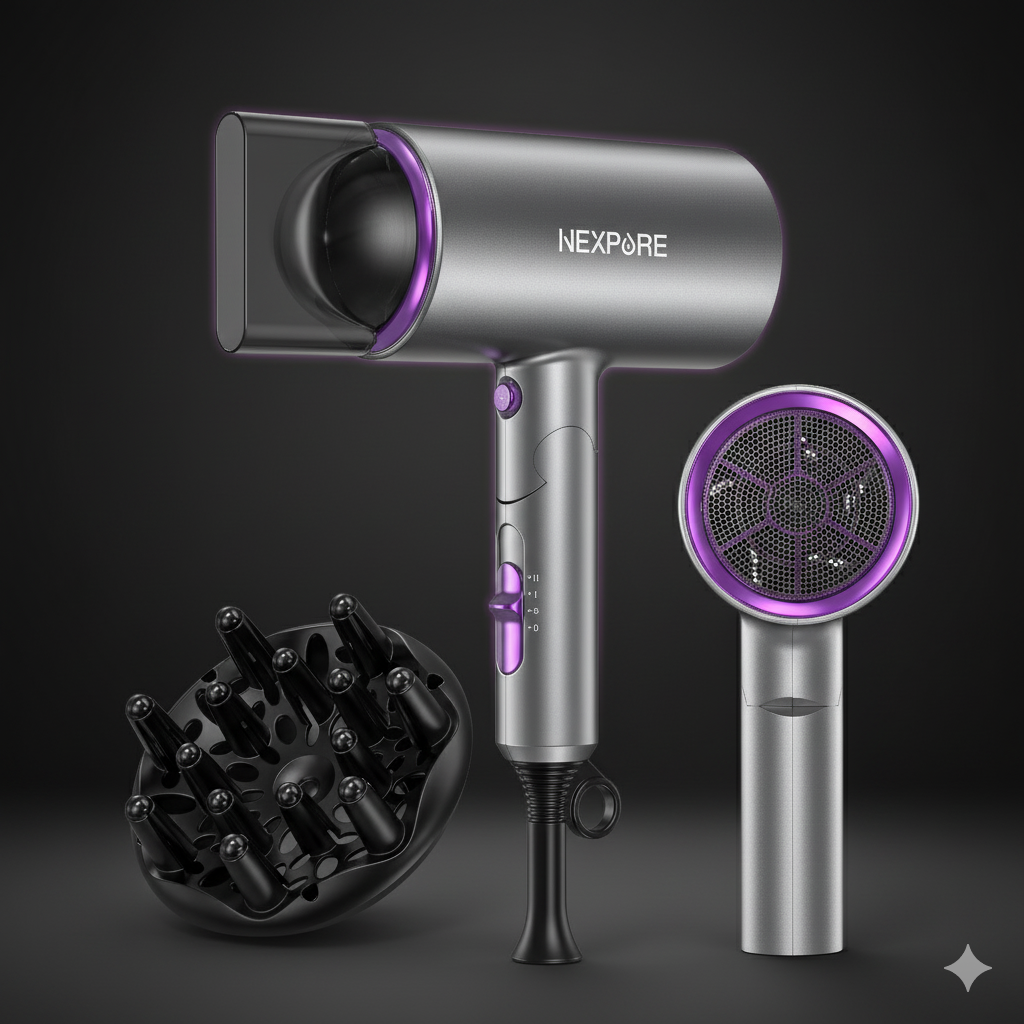 NEXPURE New Upgrade Professional Ionic Hair Dryer, 2000W Powerful Blow Dryer with Diffuser and Concentrator Attachments, Suitable for Home and Travel, Purple