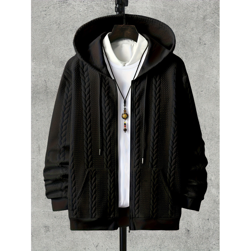 Men’s Plus-sized Casual Hooded Sweater — Black
