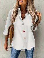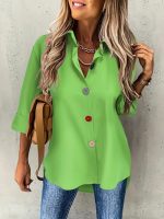 Casual Women’s Solid Color Buttons Long Sleeve Shirt Top — Yellow