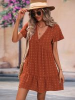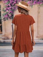 Be the first to review “Dot Butterfly Sleeve Ruffle Hem Smock Dress — Rust Brown”