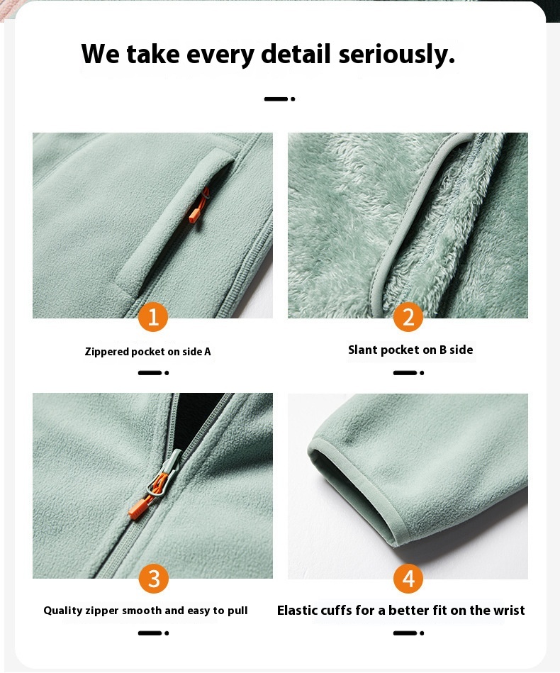 Double-sided Polar Fleece Outdoor Thick Warm Sweater Coat — Rubber Powder