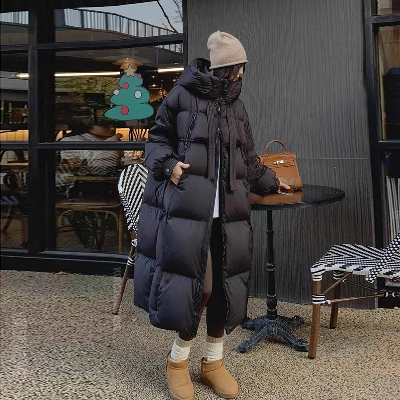 Padded Down Jacket Female Long Below The Knee — Khaki