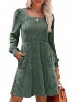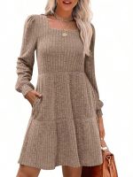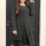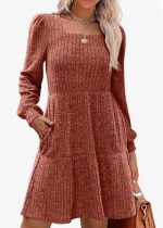 Solid Color Round Neck Knitted Dress Sweater — Orange Red