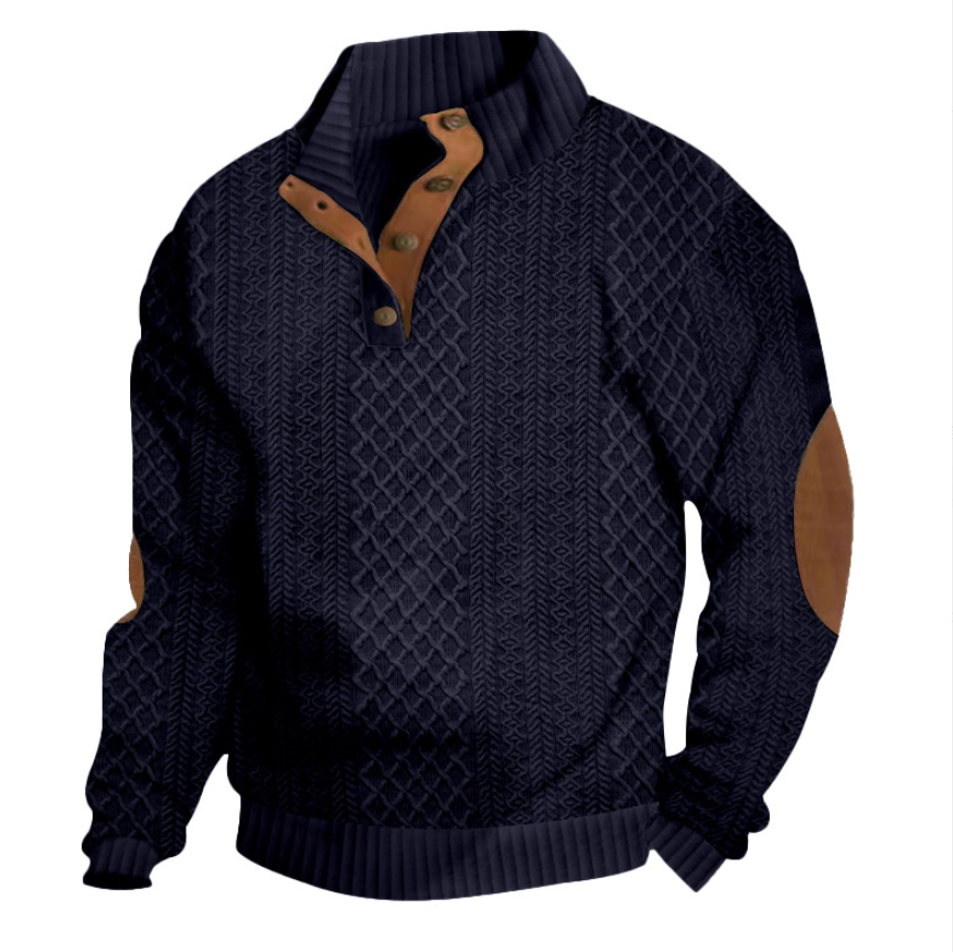 Stand Collar Long Sleeve Jacquard Knitted Pullover Sweater — Khaki 2