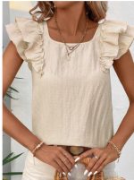 Be the first to review “Textured Bow Knot Frilled Butterfly Sleeve Blouse — Beige” Cancel reply