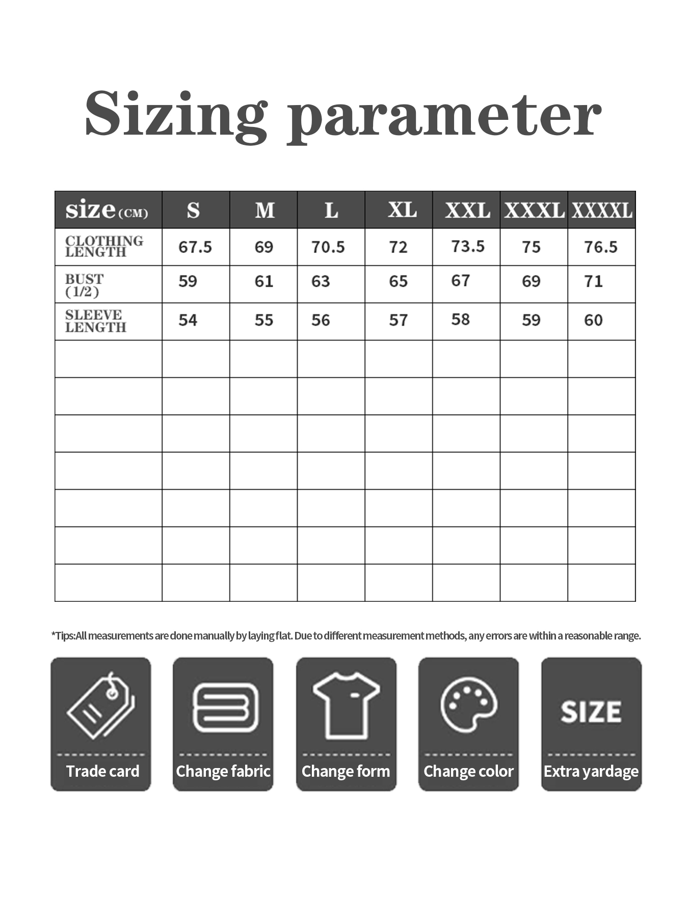 Dimensions: S, M, L, XL, 2XL, 3XL
