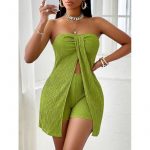 Women’s Strapless Bandeau Top Shorts Suit — 2 Apricot
